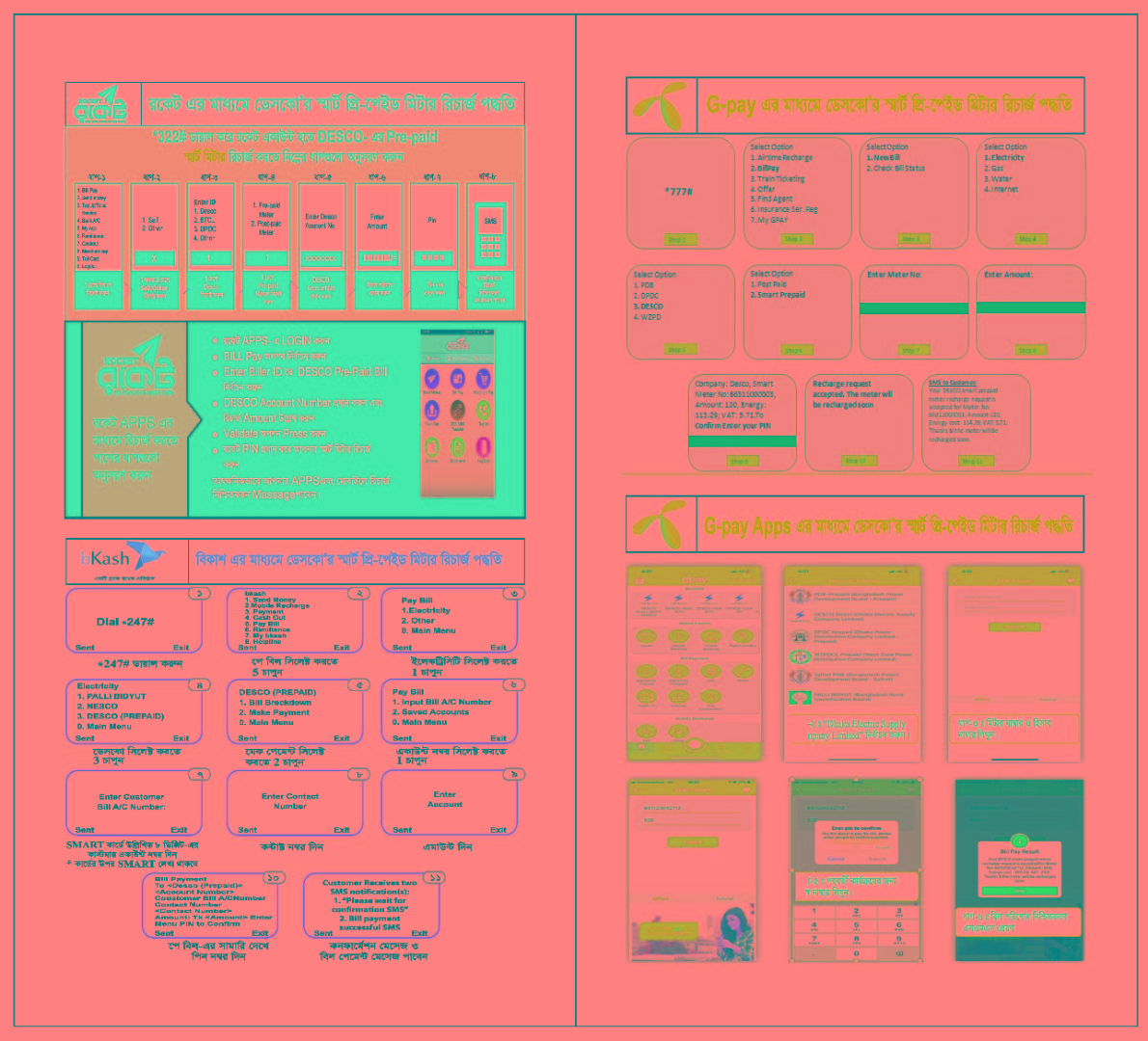 রকেট, বিকাশ, G-Pay, শিওরক্যাশ, MyCash, T Cash, Nexus pay এর মাধ্যমে ডেসকো'র স্মার্ট প্রি-পেইড মিটার রিচার্জ পদ্ধতি