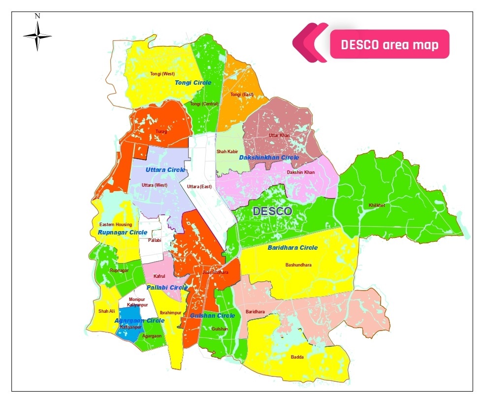 মিরপুর, পল্লবী, কাফরুল, কল্যানপুর, ক্যান্টনমেন্ট, গুলশান, বনানী, মহাখালী, উত্তরা, উত্তরখান, দক্ষিণখান, বারিধারা, বাড্ডা, টঙ্গী এবং পূর্বাচল সহ প্রায় ২৪৫ বর্গকিলোমিটার ঢাকা ইলেকট্রিসিটি সাপ্লাই পিএলসি (ডেসকো) এর আওতাভূক্ত।